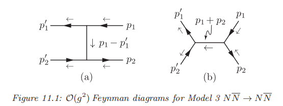 首先是 \(2.6\quad N+\bar N\to N+\bar N\),其同样对应到两个Feynman图: