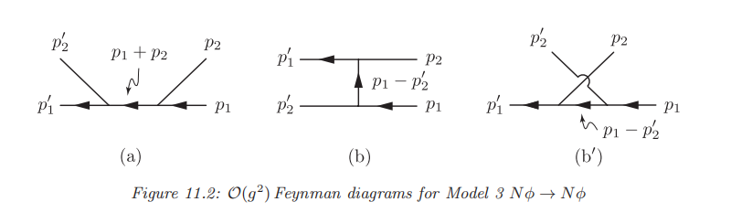 (b)和(b')是同一个图。按Feynman规则可写出散射过程的振幅为: