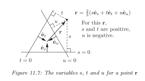 等边三角形内部的点到三条边的距离之和为一常数,即为等边三角形的高。同时,如果我们将外侧的距离定义为负数,则对平面这一结论都是成立的。平面上的点的坐标可以用Madelstam变量表示: