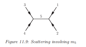 更具体一点,考虑下面的最简单的一个 \(s-\)channel散射过程:
