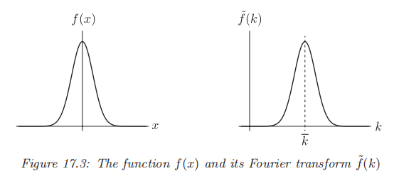 其中 \(k\) 为多粒子态的动量。而后面的 \(\langle n|\phi'(0)|0\rangle\) 与传播子的虚部相联系。我们想要创造一个在空间与动量域上都比较局域的源(当然,由于不确定原理,其不可能绝对局域)。\(f(x)\) 及其Fourier变换具有下面的形状: