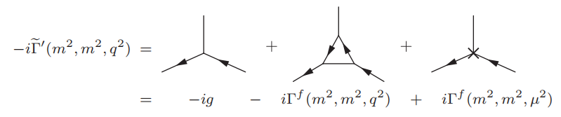 \tilde \Gamma'(m^2,m^2,q^2)=g+\tilde \Gamma^f(m^2,m^2,q^2)-\tilde \Gamma^f(m^2,m^2,\mu^2)